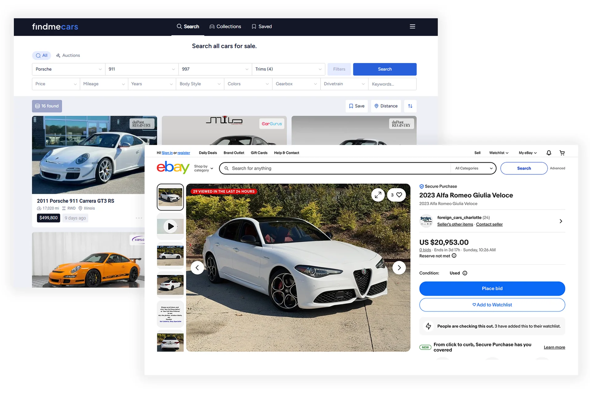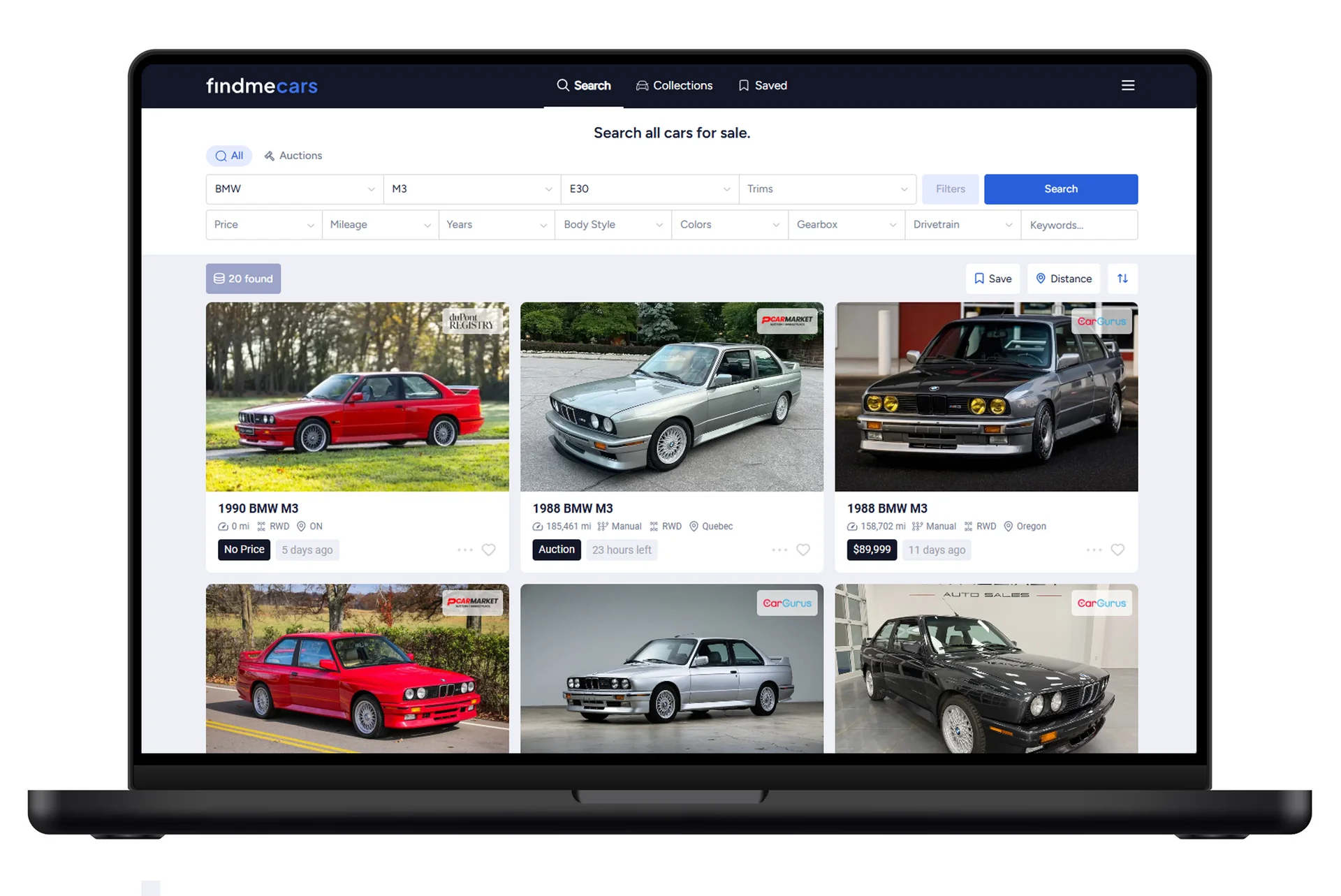 Findmecars is a search engine exclusively for car marketplaces and auction websites. Individual dealerships cannot list inventory directly on our platform.